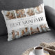 Cadeau de jour personnalisé de la mère coussin avec un collage photo de 8 modèle des enfants, le dicton "nous t'aimons tant" dans une police de script élégante, "meilleure maman jamais" dans une police de dégradé noir/gris, et les noms des enfants.