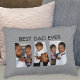 Ce coussin pour papa est décoré de trois modèles photo en forme de DAD. Ça dit "Meilleur Père Jamais". Le texte et les photos sont personnalisables.