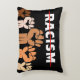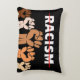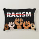 Le coussin d'accent sur la justice sociale présente un texte RACISME recouvert de plusieurs ombres et des poings surélevés.
