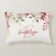 Cet élégant coussin personnalisé possède un monogramme et un prénom en écriture moderne rose et bordeaux. Une aquarelle de fleurs et de verdure rose et bordeaux rousses orne la bordure supérieure.