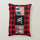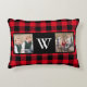 Créez votre propre tenue spéciale avec vos photos de famille préférées sur ce coussin à accent de style rustique avec un arrière - plan de plaid de buffle rouge et noir. Deux photos carrés sont encadrées par une bordure noire et le carré central est noir avec un monogramme blanc initial pour vous personnaliser. Remplacez l'exemple de photos de modèle par le vôtre. Parfait pour les photos de famille ou autres. Fait un merveilleux cadeau pour la famille et les amis. Photographie © Storytree Studios, Stanford, CA