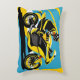 Illustration vibrante montrant un motocycliste qui roule sur une moto jaune élégant contre un arrière - plan audacieux. Le design met l'accent sur la vitesse, l'esthétique moderne et la passion automobile, idéal pour les thèmes moto et les concepts de course.
