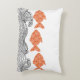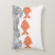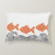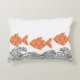 Poissons et vagues jettent l'oreiller. Les poissons sont confectionnés dans une douce orange de terre cuite et décorés d'un motif floral délicat, ajoutant une touche fantaisiste d'inspiration japonaise. Les vagues ci-dessous sont illustrées de fines lignes noires dans un style traditionnel de bloc de bois.