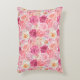 Un joli coussin décoratif floral de couleur rose, blanc, rose foncé et magenta.