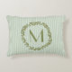 Élevez votre décor de maison avec ce coussin monogramme personnalisé, avec d'élégantes rayures verticales vert sauge et une couronne de branche d'olivier peinte à la main. Le monogramme personnalisable en fait un accent élégant et fonctionnel pour les salons, les chambres, les crèches ou les coins lecture. Une idée de cadeau parfait pour le ménage ou le mariage !