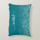 Faux brillant turquoise parties scintillant ombragé sur un revêtement bleu turquoise. Vous pouvez customiser la couleur arrière - plan de couleur solide. Ajoutez un monogramme derrière le nom donné pour créer votre propre monogrammed personnalisé. Le texte personnalisé est composé d'une police de style manuscrit moderne avec des pointes de courbure. Choisissez votre propre couleur personnalisée pour la police. Retirez les écouvillons et ajoutez une majuscule si vous le souhaitez. Déplacez le nom vers une autre position sur son coussin d'accent rectangle.