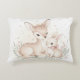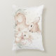 A dreamy and elegant accent pillow perfect for a girl's nursery, bedroom, or cozy living space. This design features original soft watercolor artwork of a gentle baby deer (fawn) and a sweet little bunny, both adorned with subtle tiny crowns or light bows. The scene captures a peaceful, warm winter setting with delicate falling snow, subtle winter foliage (berries and soft leaves), and sparkling soft gold star accents. The palette is a refined "Girls MerryMist Palette," highlighting Blush