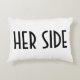 "Her Side" tapé dans une police d'inspiration Art Déco sur un coussin lombaire. "Son côté" également disponible.