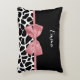Un coussin d'accent tendance en girafe noir et blanc avec un ruban rose girly attaché dans un joli arc. Personnalisez cet élégant design poster de animal en ajoutant votre nom. Le rose rose rose rose à l'envers peut être customisé avec votre propre couleur personnalisée. Image imprimée plate, pas l'arc réel.