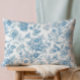 Elevate your bedding with our new accent throw pillow design featuring an elegant Toile-de-Jouy Chinoiseries blue floral pattern, against a custom white background.