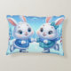 Les deux lapins sont blancs avec de grands yeux bleus expressifs et des joues roses. Ils portent des vêtements d'hiver - le lapin à gauche a un pull bleu et des oreilles blanches, tandis que celui à droite porte une robe turquoise avec un arc assorti et une écharpe bleue. Leurs expressions joyeuses et leur façon de tenir la main rayonnent de chaleur et d'amitié. La scène est posée sur un lac gelé, visible de la surface lisse et glacée reflétant les étoiles scintillantes ci-dessus. L'arrière - plan est orné d'arbres à feuillage persistant dépoussiérés par la neige, ce qui ajoute à l'ambiance hivernale. Un seul flocon de neige est accroché au centre supérieur, probablement un ornement, mettant davantage l'accent sur l'humeur festive. L'image est parfaite pour une carte de Noël ou une illustration de livre pour enfants, évoquant des sentiments de joie, d'amitié et la magie de la période des fêtes.
