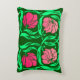 Coussin accent dans un vintage William Morris motif textile de fleurs et de feuilles stylisés en pimpernel - fleurs dans un dégradé profond à rose corail doux, avec feuilles vert menthe clair, sur un arrière - plan vert émeraude foncé