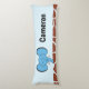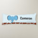 Illustration de l'éléphant coussin corporel personnalisé avec un nom. Le dos de ce coussin est rempli de dessin de tête d'éléphant. Fond motif bleu et girafe.