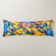 Feuilles d'automne colorées de couleur orange et jaune contre l'arrière - plan bleu et gris. Belle et positive scène florale d'automne. Coussin corporel pour n'importe qui.