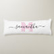 Créez votre propre coussin de corps monogramed personnalisé pour elle. Modifiez la couleur arrière - plan blanche, le texte noir et les couleurs de l'ombre et la couleur rose pâle de la police rétro géométrique. Si vous modifiez la couleur de la police, veillez à vérifier deux fois la couleur de l'ombre portée. Customisez le style et la taille du script de calligraphie écrit à la main, selon les besoins.