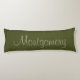 Cette conception réversible offre une rangée d'oies de faux feuille d'or, et leurs ombres, marchant à travers un long coussin à l'ombre branchée d'un vert sage profond. Au verso, ajoutez votre nom dans une teinte plus pâle dans une police semi-script. Profitez de différentes options d'affichage pour correspondre à vos humeurs.