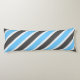 Ce coussin de corps présente un beau motif rayé en diagonale en bleu ciel, gris foncé et blanc.