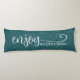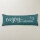 Oreiller corporel avec citation de reconnaissance et de gratitude 'Profitez des petites choses' en bleu pailleté. Améliorez votre décoration de lit, de salon ou de salle de séjour. Excellente idée de cadeau.