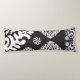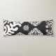 Coussins Longs Motif noir et blanc complexe avec fleurs