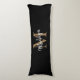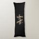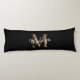 Oreiller de Corps Anniversaire de Nouveaux Mariés Noir Or Monogramme Écriture. Personnalisez facilement cet oreiller de corps élégant et moderne avec votre monogramme et nom personnalisés.