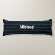 Ce mignon coussin du corps présente des rayures bleues foncées et noires. Peut être customisé avec le nom pour un cadeau spécial.