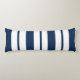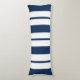 Ce coussin de corps est présenté dans un design à rayures audacieuses en bleu marine et blanc.