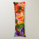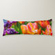 Violet coloré, violet, tulipes roses sur un lit à fleurs. Presque toutes les couleurs arc-en-ciel présentes. Scène florale lumineuse et positive. Coussin corporel pour n'importe qui.