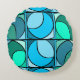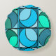 Coussin rond de style seventies , formes abstraites dans les tons bleus, verts et turquoise