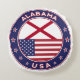 Badge de l'Alabama avec drapeau de l'Alabama et drapeau des Etats-Unis couleurs, forme arrondie. Emblème de l'Alabama. Sceau de l'Alabama. Collection USA Etats.