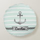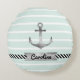 Un oreiller moderne à jetons ronds avec ancrage gris aquarelle sur un arrière - plan rayé vert et blanc à la menthe. Vous pouvez également personnaliser la conception avec du texte personnalisé sous l'ancrage.