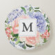 Coussins Ronds Aquarelle monogramme bleu rose printemps floral