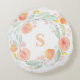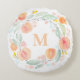 L'aquarelle pêche le Coussin rond de monogramme de couronne florale. Doux comme une pêche ! Coussin monogramme personnalisable avec couronne d'aquarelle avec pêches et feuillage. Ce coussin sucré et appétissant sera parfait comme cadeau personnalisé.