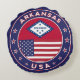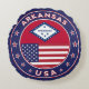 Badge de l'Arkansas avec drapeau de l'Arkansas et drapeau des Etats-Unis couleurs, forme arrondie. Emblème de l'Arkansas. Sceau de l'Arkansas. Collection USA Etats.