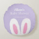 Drôle Baby shower Coussin rond avec lapin moelleux en aquarelle. Il est très facile de customiser, avec vos données personnelles. Des éléments correspondants sont disponibles.