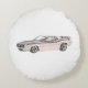 Ce dessin en forme de crayon du côté conducteur d'un Plymouth Barracuda orange de 1970 avec sa capuche noire et sa bande de course en bas est un excellent modèle d'oreiller rond pour amener cette vibe automobile dans n'importe quelle chambre.