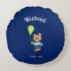 Coussin rond avec ours bébé mignon avec ballon de fête sur arrière - plan bleu foncé