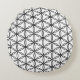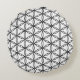 Coussin ronde avec fleur de vie motif. Ce design élégant aux couleurs noir et blanc appartient à la géométrie sacrée. On croit que la fleur du motif de vie apporte guérison et harmonie. Chaque intersection de cercles forme l'étoile de David.