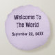 Ce coussin rond de pépinière présente des fleurs peintes en violet qui entourent le nom du bébé. Les fleurs affichent des tons violets et l'ensemble est placé contre un arrière - plan violet clair. "Bienvenue dans le monde" et la date de naissance du bébé sont à l'arrière. Tout le texte et la couleur arrière - plan peuvent être facilement customisés si vous le désirez.