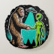 Cette image fantaisiste illustre une rencontre amicale entre deux êtres légendaires : Bigfoot et un alien. La scène, dressée contre un ciel étoilé avec des silhouettes de pins, montre Bigfoot et l'alien serrant la main sous le faisceau d'un OVNI planant au-dessus. Bigfoot, recouvert de fourrure brune, se tient sur la gauche tandis que l'alien vert et humanoïde avec une grande tête et des yeux noirs se tient sur la droite. La combinaison de ces personnages emblématiques dans une réunion pacifique ajoute une touche ludique aux deux mythes, ce qui en fait un morceau fascinant et humoristique pour les amateurs de l'inexpliqué.