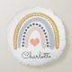Aquarelle boho tendance arc-en-ciel personnalisé unique coussin rond pépinière pour votre bébé pépinière ou chambre d'enfant.