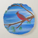 C'est une scène hivernale enneigée d'un cardinal assis sur une branche d'un pin clairsemé, un pop de rouge contre un ciel bleu. Cette image était à l'origine peinte sur toile avec des peintures acryliques et accrochée à la maison de l'artiste chaque hiver.