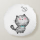 Cet oreiller rond fantaisiste est mignon comme il se peut et est un élément de décoration idéal pour une chambre de petite fille qui est frappée de chatons ! Chaque côté de ce coussin blanc rond est illustré d'un chaton ou d'un chat gris et blanc mignon, jouant avec un papillon noir illustré.