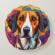 Coussins Ronds Chien avec collier dans un cadre circulaire