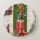 Chien berger allemand Noël assis à l'extérieur de la maison décorée avec la couronne de Noël, arbre de Noël est une idée cadeau de Noël parfait pour les amoureux de les chiens.
