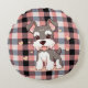 Ajoutez une touche de fantaisie et de confort à votre maison avec cet adorable coussin rond ! Doté d'un mignon chiot Schnauzer sur un élégant motif à chevalets rose et noir, ce coussin est l'accent parfait pour n'importe quel canapé, chaise ou lit. Un détail empreinte de patte et ludique ajoute un charme supplémentaire, ce qui en fait un incontournable pour tout amoureux des chiens ou quiconque cherche à ajouter une touche de personnalité à sa décoration.