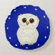 Coussins Ronds Chouette blanche et étoiles sur Royal Blue
