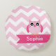 Un motif moderne en chevron rose clair et blanc et un hibou rose sont présents sur ce coussin rond de qualité. Personnalisez facilement avec le nom d'un enfant. Idéal pour une petite garderie ou une chambre pour tout-petits.