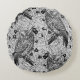 Coussins Ronds Chouettes dans le chêne, noir et blanc