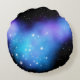 Coussin rond galaxy avec une éclaboussure cosmique de nébuleuse bleue et violette nuages et étoiles étincelantes. ♡ Idyllfire