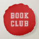 Un coussin de livres avec les mots "Book Club" en blanc contre un arrière - plan modifiable (cliquez sur personnaliser pour changer la couleur de l'arrière - plan). *Veuillez noter que le filigrane Zazzle qui apparaît dans l'aperçu du zoom n'apparaîtra pas sur le produit imprimé final. © Bookish and Wonderful